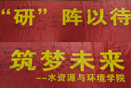 接着,老师和学生们一同在条幅上签字留念。每一笔都凝聚着师生对考研成功的期许和祝福,也象征着同学们携手并进、共同奋斗的决心。这份共同签名,不仅是对自己考研决心的坚定表达,更是对国家和社会责任的庄严承诺。