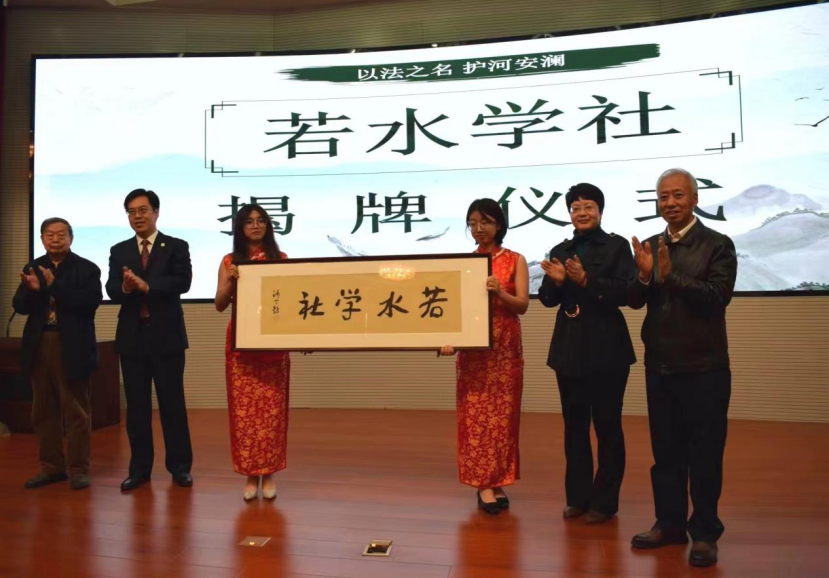 若水学社揭牌仪式。首先,社长梁嘉琦介绍了若水学社成立的背景、宗旨、任务和设想。若水学社是在于开宁院长的倡导推动下,在学校、学院团委老师指导帮助下,于2022年年底成立,并且得到了侯万福老师的题字。作为一个志愿公益类性质的社团,以“水悟人生,梦想未来”为宗旨,让同学们“学习感悟水情怀,传播科普水文化”,将水文化与大学生的人生梦想紧密联系起来。未来的活动中,将守正创新,提高活动组织水平,为广大爱好水文化的同学提供互相交流、共同学习的平台,创造良好的学术氛围,吸引更多更优秀的同学加入到组织中来,打造一个有内涵、有深度的好社团。
