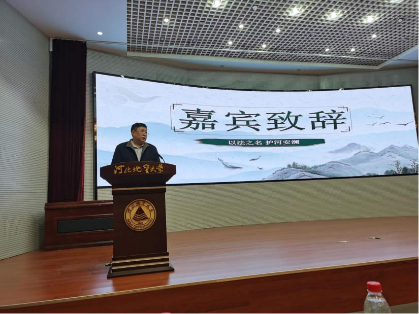 于开宁教授致欢迎辞。首先对各位领导嘉宾的到来表示热烈的欢迎和衷心感谢,随后介绍了学院的传统优势与发展现状。几十年来,学院凝练“育人为本 学术至上”的办学宗旨和“传承创新”“水德树人”的发展理念,以“水文化之窗”“水文化传创团队”“若水学社”“水悟人生 梦想未来”系列活动和院长思政报告为抓手,挖掘水文化思政元素,加强课程思政建设,倡导师生学习、感悟、践行、弘扬水文化。从早期的“全国科技大会奖”、闻名全国的社会服务《哗哗流水唱赞歌》,到全校第一个省重点学科、第一个省部“重点实验室”“协同创新中心”“技术研发中心”;还有国家级一流本科专业(地下水科学与工程)、100%的“双万计划”获批率、国家省部级“教学名师”“教学成果一等奖”“优秀科技工作者”;以及依托3个省级科研平台承担973等国家计划与产学研深度合作,获得国家省部级成果奖,服务国家战略与地方需求的“地下水超采综合治理研究中心”“全国科普日活动优秀组织单位”““三下乡”社会实践全国优秀团队”。近年来,与国家省部级学术团体建立了密切的交流合作关系,本次活动是学院与河北省水利学会、河北省城市智慧联合会的再一次深度融合,并且由学生组织承办,必将深化科学普及、推动科技创新发展与学科专业建设。通过这样的活动,希望师生能够“感悟水情怀,科普水文化,弘扬水精神”。