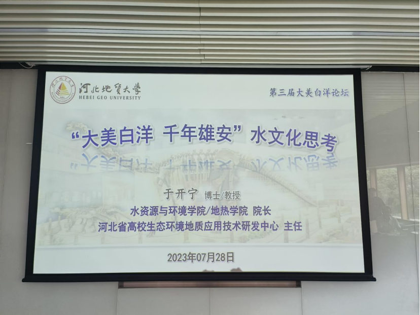 于开宁教授作了第一个专题报告之水文化:“大美白洋,千年雄安”水文化之思考。通过悟水历程、雄安新区规划建设的思考、地质文化讨论会(神仙会)、习近平的水文化情怀等背景分析,探讨了新区及海河流域丰富多样的地质文化资源,提出了“大美白洋 千年雄安”水文化研究与建设的思考。认为,拯救地球、缓解水危机成为21世纪的世界主旋律,而地球科学文化、水文化则为其主旋律文化。雄安新区及海河流域地质文化资源丰富多样;以海河流域和渤海之水结缘,水是京津冀协同发展的重要象征。水文化研究与建设将为京津冀和新区发展提供新的探索和重要价值;水生态文明是雄安新区规划建设之关键。大美白洋,提升水环境价值,实现人水和谐;感悟水文化,启迪“千年大计”“未来之城”。