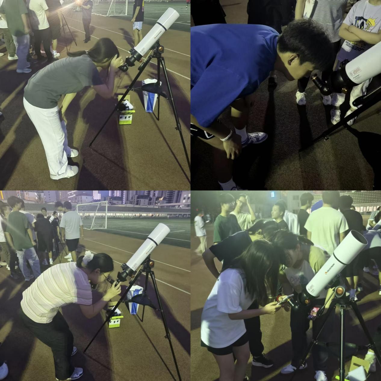 20时30分,活动迎来高潮时刻,中国空间站天空过境。在科技辅导员的指导下,同学们抬头仰望,共同锁定天穹,寻找一个高速掠过的光点,期待着天宫的身影出现。大家发现目标时,迅速按下快门拍照记录,惊呼声此起彼伏,十分激动。这一刻,书本上的轨道力学公式化作真实的视觉震撼,理论课堂与航天实践完成跨越400公里的时空对话。