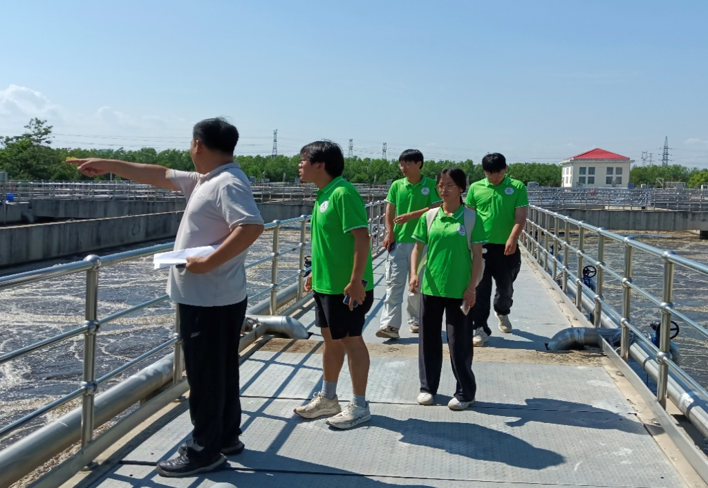 调研期间,团队与秦南水务有限公司深度联动。在企业负责人引导下,实践团全程观摩污水处理全流程:从格栅过滤泥沙杂物,到生物反应池微生物降解污染物,再经沉淀、过滤等精细处理,原本浑浊的污水最终变得清澈透明。据介绍,该公司暑期日处理量最高达12万吨,冬季约5万吨,处理后出水不仅达标国家一级A标准,更优于地表水环境质量四类标准,产生的污泥经无害化处理后可作有机肥,实现“变废为宝”。进口滤沙系统等先进技术的应用,让团队直观感受到科技治污的硬核实力。