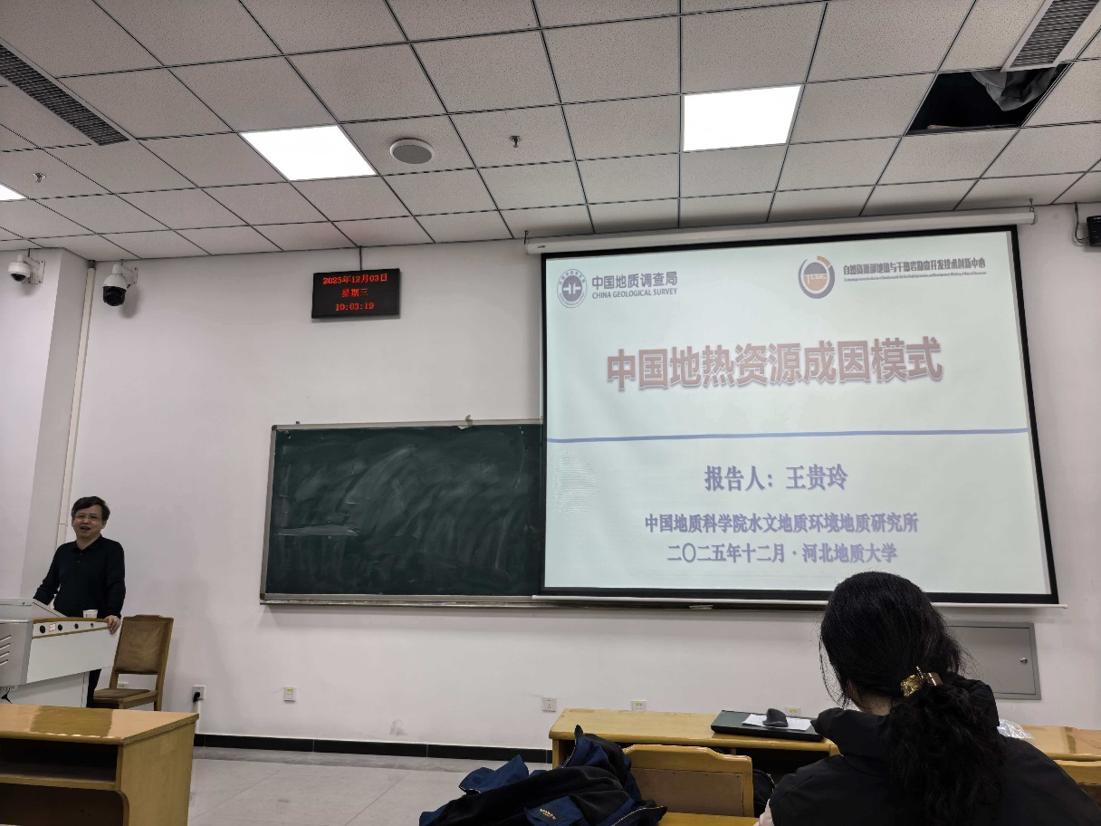 于12月3日上午在图书馆615教室,特邀自然资源部地热与干热岩勘查开发技术创新中心王贵玲研究员,为学院师生带来题为《中国地热资源成因模式》的专题学术报告。学院副院长陈康、能源研究所副所长刘昭和青年教师李华耀、李超、郎旭娟、王潇及全体研究生参加了本次活动。