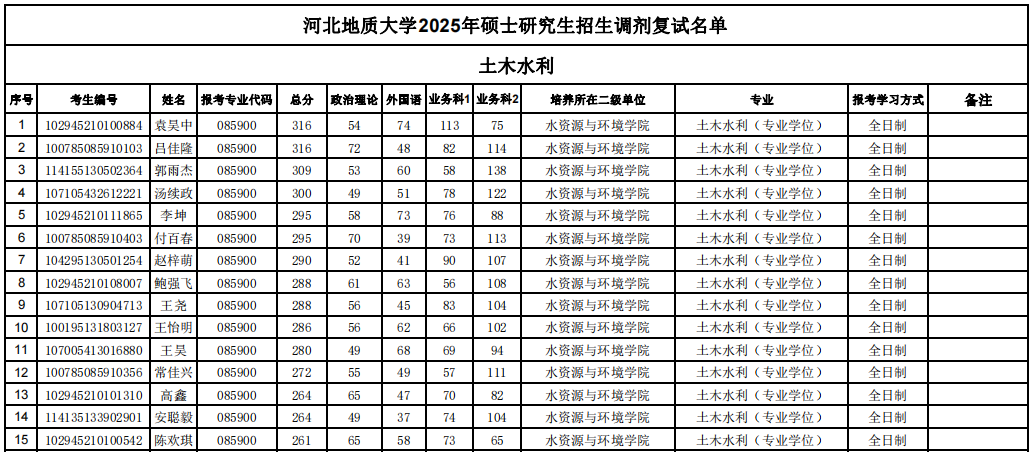 口爆 2025年硕士研究生招生调剂复试名单