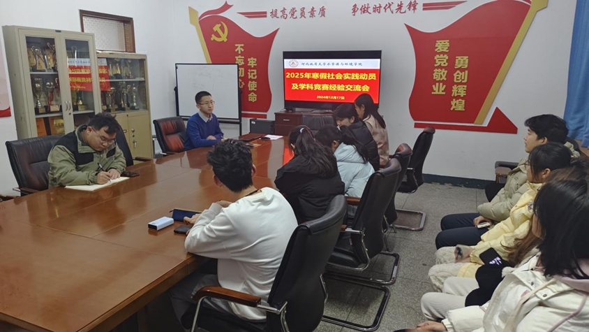 2023级和2024级同学的参与,现场气氛热烈。本科教育阶段,社会实践和学科竞赛对于大学生的成长和发展起着至关重要的作用。社会实践能够让同学们走出校园,接触社会,锻炼实践能力和综合素质;而学科实践则可以激发同学们的学习兴趣,提高专业技能,培养创新精神和团队合作意识。因此,将寒假社会实践动员与学科竞赛经验交流相结合,具有重要的现实意义。