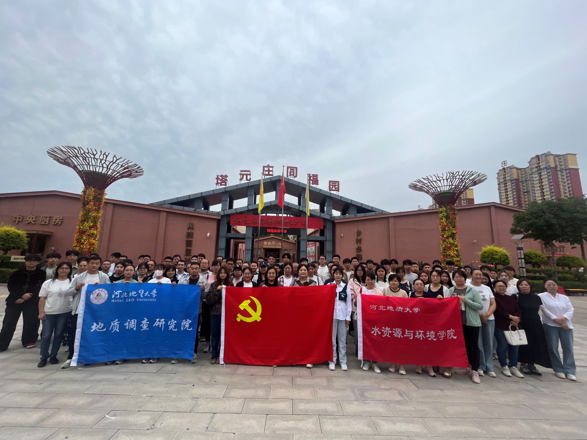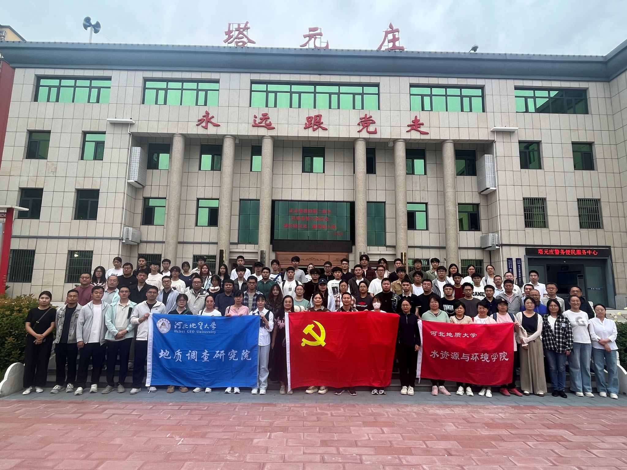 组织百余名师生,联合地质调查研究院教师共同赴正定塔元庄红色教育基地,开展 “学思想、强实践、促联建” 主题党建参观学习活动,在红色研学中凝聚奋进力量,在专业交流中践行初心使命。