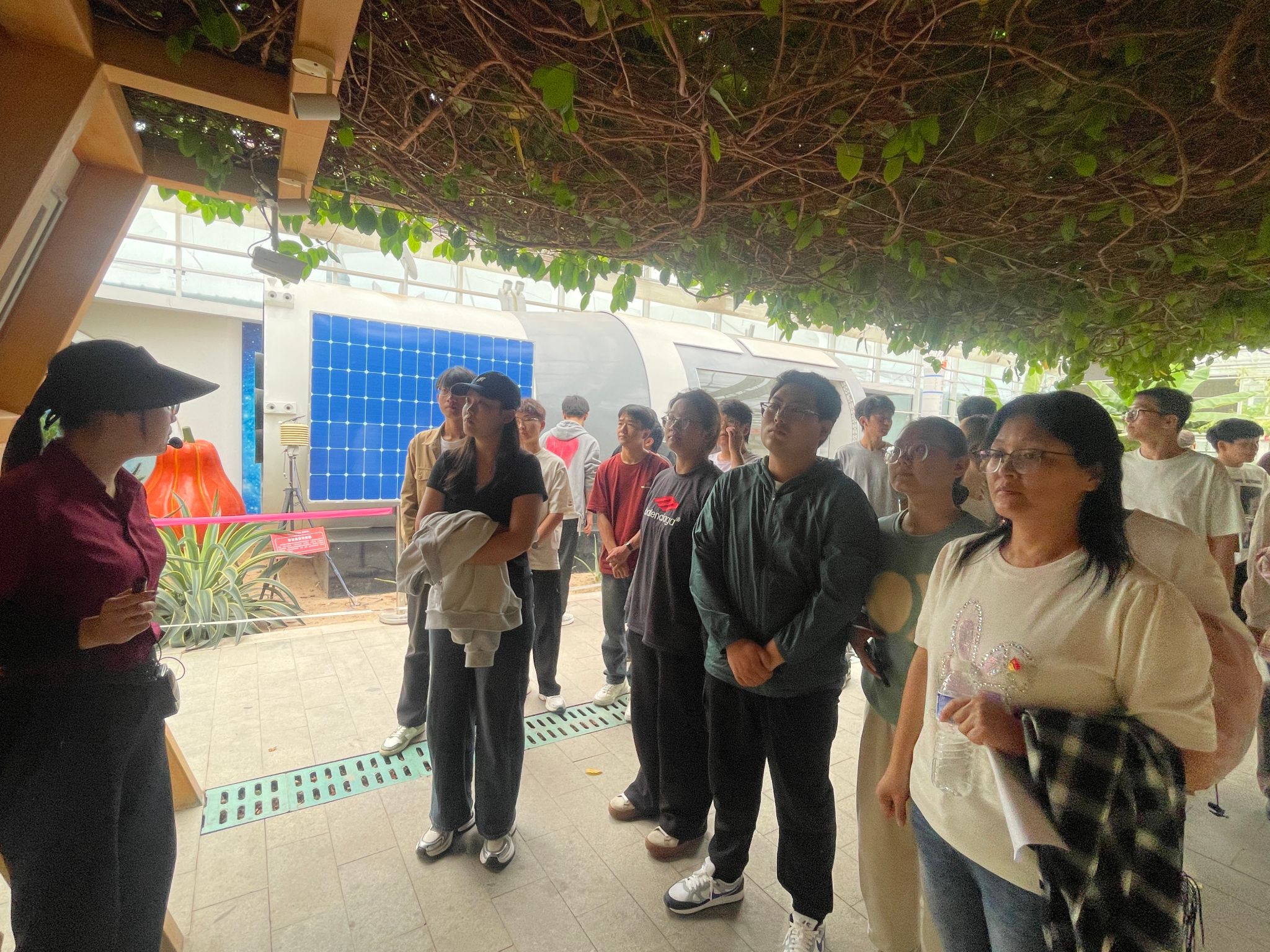 在同福园示范园区,师生们聚焦“党建引领下的绿色发展”,实地考察果蔬菜无土栽培技术应用,详细了解园区在生态种植、资源循环利用方面的创新实践;走进园区养老福利院,直观感受 “产业融合 + 民生保障”的乡村治理模式。塔元庄以党建为抓手,将生态保护与民生改善紧密结合,为学院的教学科研提供了“活教材”,让党的创新理论在乡村实践中有了具体落点。“党建+生态+产业”的发展模式,为研究资源可持续利用提供了现实样本,更让师生看到了专业服务国家战略的广阔空间。