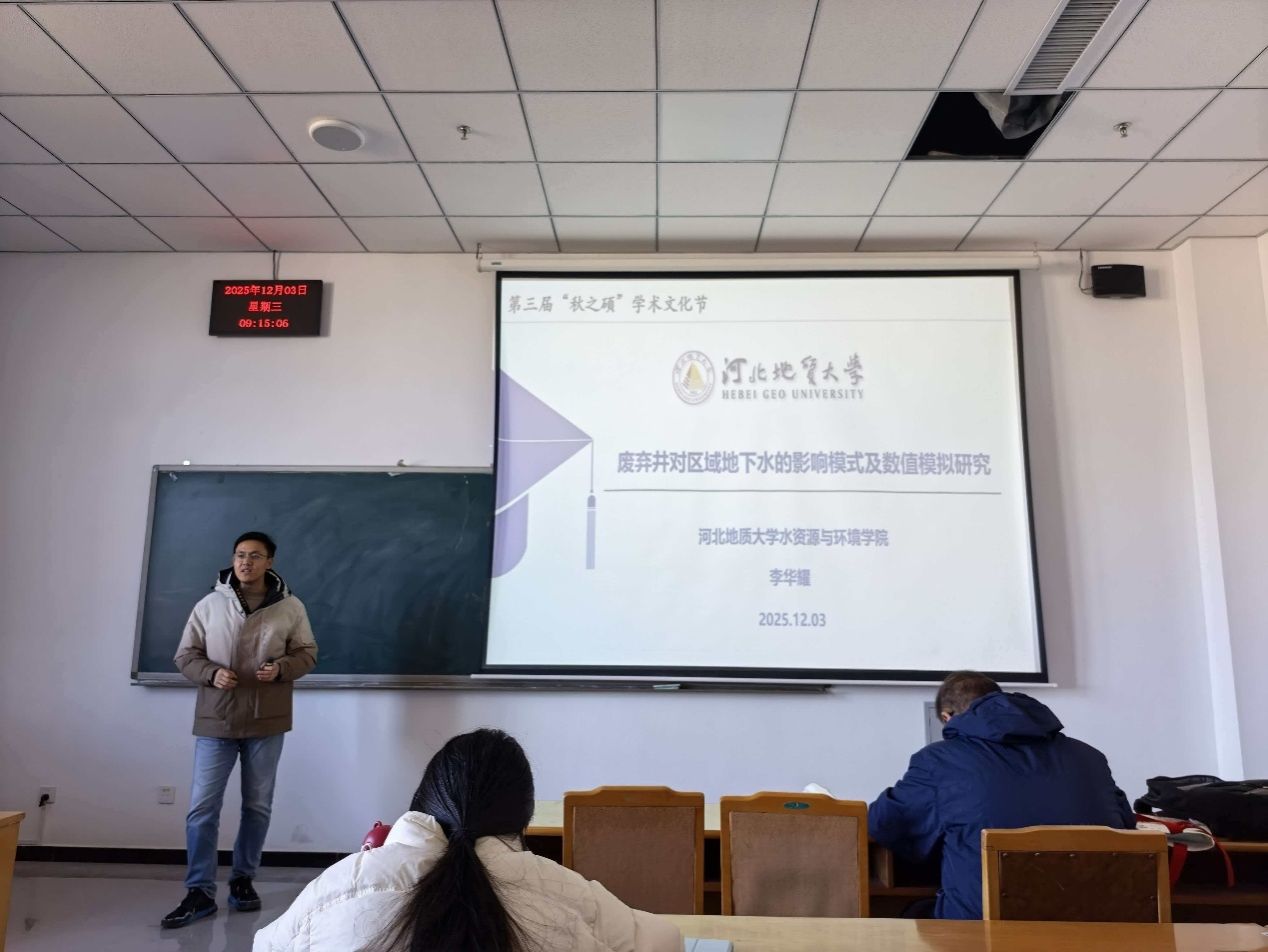 分会场特邀3位校外专家进行专题报告,专家报告由陈康副院长主持。河北农业大学潘增辉教授以《水与人类文明》为题,从历史、社会与生态维度阐述了水资源的战略意义,引发了在座师生对水资源可持续利用的深刻思考。自然资源部地热与干热岩勘查开发技术创新中心王贵玲研究员作了题为《中国地热资源成因模式》的学术报告,系统剖析了我国地热资源的形成机制与勘探开发前景,其扎实的研究内容与清晰的前沿视野,极大地拓宽了学生的专业认知。中国地质科学院水文地质环境地质研究所马荣研究员作了题为《内蒙古高原湖泊演化机制与生态效应研究》的学术报告,系统介绍了该区域湖泊环境的变化过程及其生态影响,为理解高原地区水生态安全提供了重要科学视角。