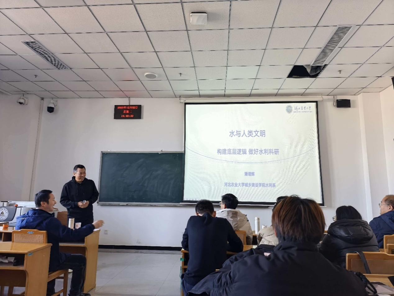 于12月2日下午在图书馆615教室,特邀河北农业大学潘增辉教授,为学院师生带来题为《水与人类文明》的专题学术报告。学院副院长陈康,青年教师冯雨晴、李华耀、李超、营娇龙及全体研究生参加了本次活动。