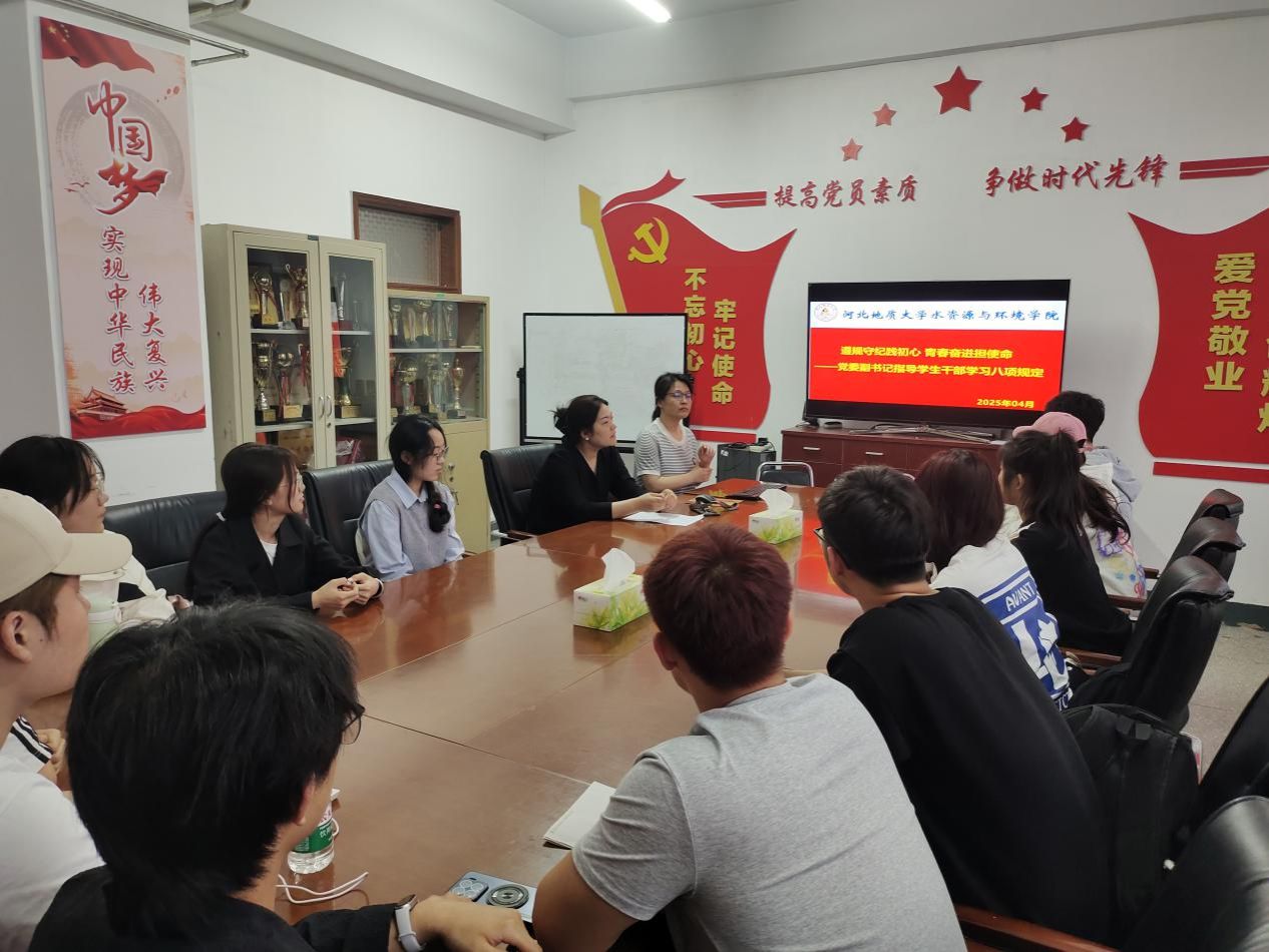 在主楼542会议室组织召开了一场主题为“遵规守纪践初心,青春奋进担使命”的学生干部中央八项规定精神学习会议。本次会议由学院党委副书记张丽娜主持,辅导员王美云老师出席,水环学院团委、学生会、科协全体学生干部参会。